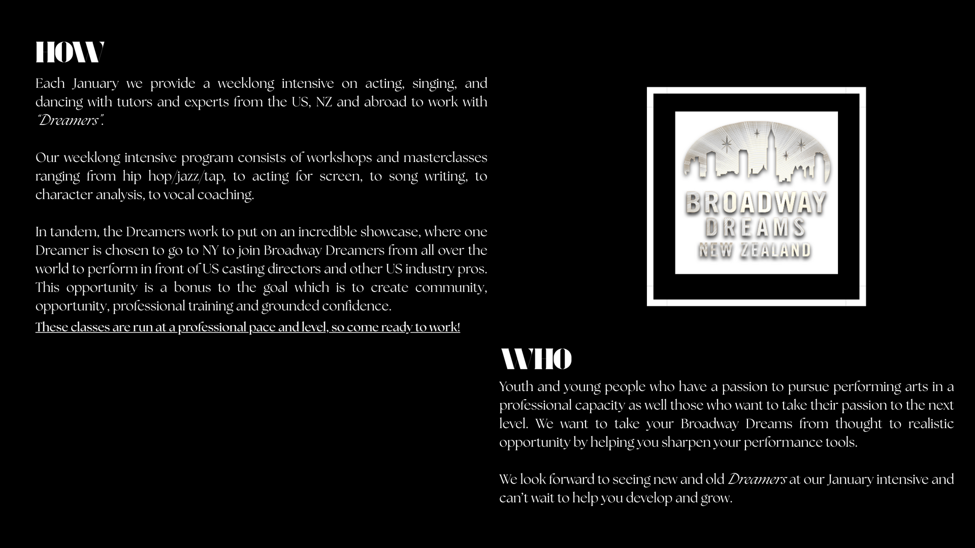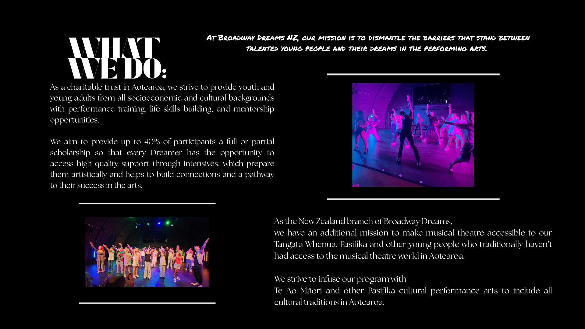 Performance apprentices must serve as outstanding leaders and examples to all Broadway Dreams participants.